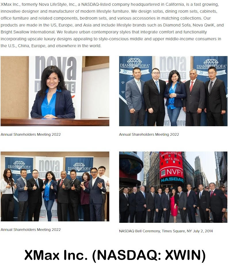 COMMERCE, Calif. - s4story -- XMax Inc. (N A S D A Q: XWIN) $XWIN, formerly known as Nova LifeStyle Inc., is executing a decisive and forward-looking transformation—leveraging its established global furniture platform while aggressively expanding into artificial intelligence and advanced technology sectors. With deep-rooted relationships across the top 100 U.S. furniture companies and a global distribution footprint spanning retail, e-commerce, and hospitality channels, XWIN is now positioning itself at the intersection of traditional cash flow stability and next-generation innovation.
